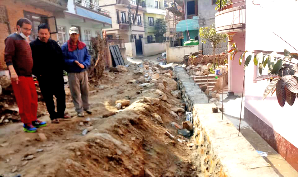 वैकल्पिक सडकको रुपमा निनर्माण भइरहेको यो सडक गएको सालमै निर्माण शुरु भए पनि काम राम्रो सँग नभएको स्थनीयहरुको गुनासो छ । यस बाटो वरपर भौतिक संरचना नरहेका पर्खाल भत्काएर सडक निर्माण भइरहेको स्थानीय विकाश महर्जनले बताए ।