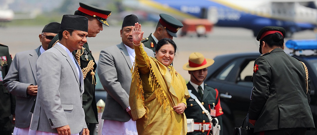 राष्ट्रपति भण्डारीका साथ परराष्ट्रमन्त्री प्रदीपकुमार ज्ञवाली, परराष्ट्र मन्त्रालय र राष्ट्रपति कार्यालयका सचिवलगायत हुनुहुन्छ । उहाँलाई त्रिभुवन अन्तरराष्ट्रिय विमानस्थलको अतिविशिष्ट कक्षमा उपराष्ट्रपति नन्दबहादुर पुन, प्रधानमन्त्री केपी शर्मा ओली, उपप्रधानमन्त्री एवं रक्षामन्त्री ईश्वर पोखरेल, नेपाल कम्युनिष्ट पार्टी (नेकपा) का संसदीय दलका उपनेता सुवास नेम्वाङ, गृहमन्त्री रामबहादुर थापाले बिदाई गर्नुभएको थियो ।