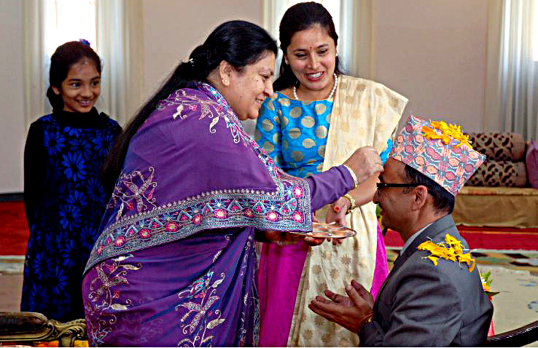 भण्डारीले भाइहरु डेगेन्द्र र तेजेन्द्र पाण्डेलाई मंगलबार विहान ११ः५५ बजेको उत्तम साइतमा टीका लगाइदिंने शितलनिवासमा कार्यक्रम तय गरिएको थियो ।
