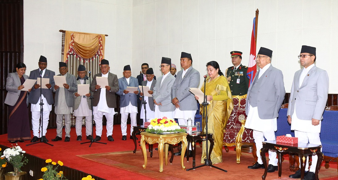 शपथ ग्रहण समारोहमा उपराष्ट्रपति नन्दबहादुर पुन, प्रधानमन्त्री केपी ओली, प्रधानन्यायाधीश चोलेन्द्रशमशेर जवरा राष्ट्रिय सभाका अध्यक्ष गणेश तिम्लिसेनालगायत उपस्थित हुनुहुन्थ्यो ।