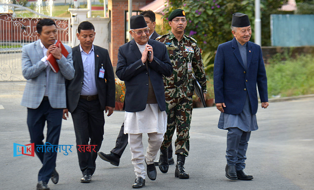 प्रधानमन्त्री निवास बालुवाटारमा जारी सर्वपक्षीय बैठकमा नेपाल कम्युनिस्ट पार्टी (नेकपा)का अध्यक्ष एवं पूर्वप्रधानमन्त्री पुष्पकमल दाहाल ‘प्रचण्ड’, पूर्वप्रधानमन्त्री माधवकुमार नेपाल, उपप्रधान एवं रक्षामन्त्री ईश्वर पोखरेल, नेकपा नेता भीमबहादुर रावलको सहभागिता छ ।
