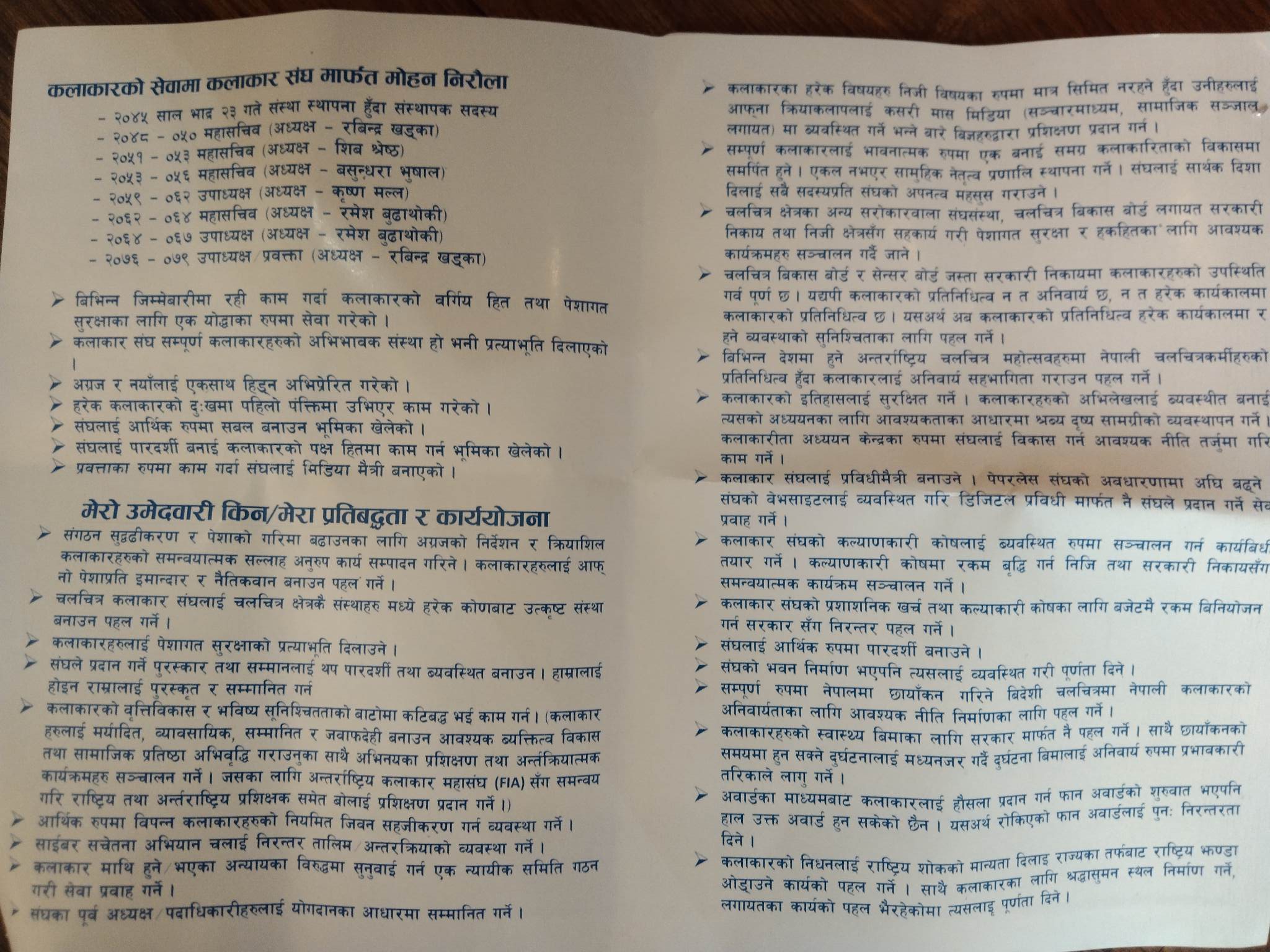 यस्तै निरौलाले आफ्नै प्रतिवद्धता पनि सार्वजनिक गरेका छन् । उनले संगठन सुदृढीकरण र पेशाको गमिा बढाउन अग्रजको निदे्र्रशन र क्रियाशिल कलाकारहरुको समन्वयात्मक सल्लाह अनुरुप कार्य सम्पादन गर्ने लगायतका प्रतिवद्धता छन् ।