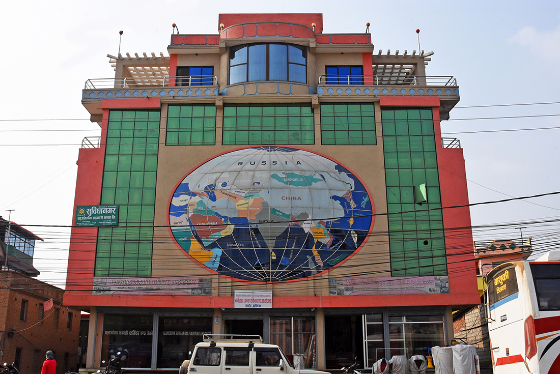 काठमाडौंको पेप्सीकोलामा पृथ्वीको नक्सा अंकित घर ।