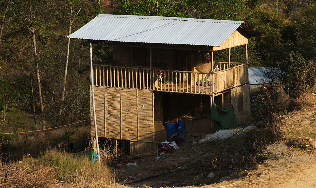 ललितपुरको बडिखेलमा बाँसले बनाइएको घर ।
