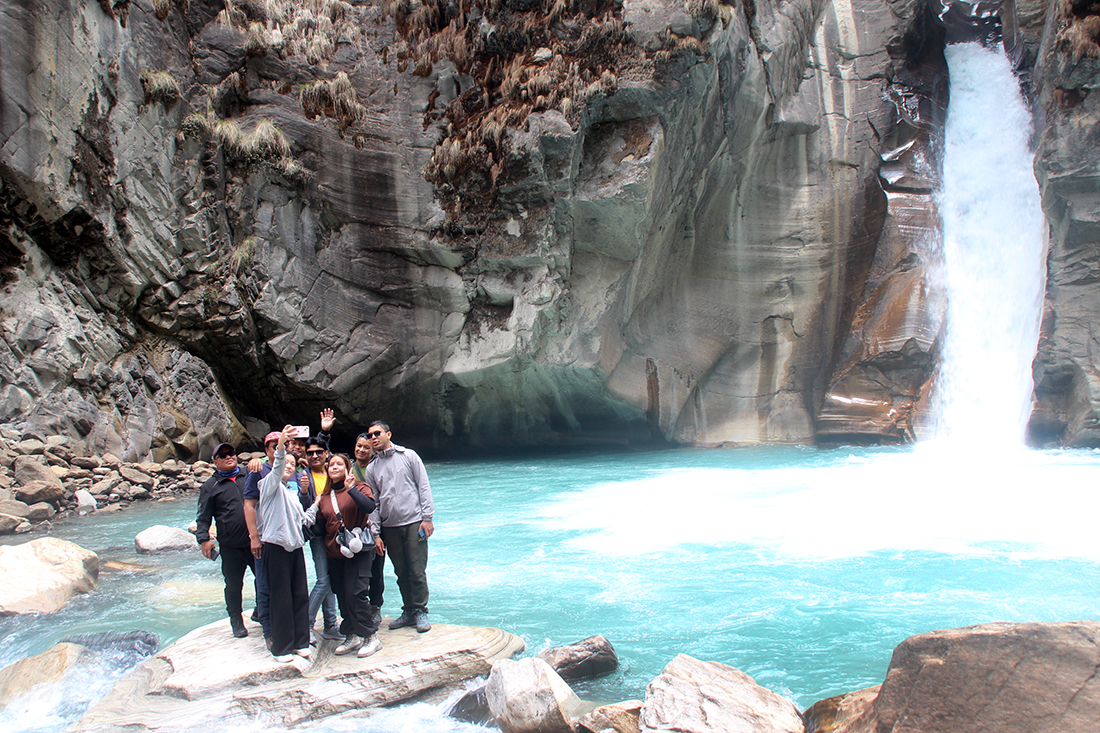 १२ जेठ । अग्ला पहाडबाट खस्ने झरना । झरनाको फेदीमा बनेका सफा तलाउ । वरिपरि वनजङ्गल । पदयात्राबाट देखिने सुन्दर झरनाका मनमोहक दृश्यले यात्राका थकान मेटाइदिने गर्छ । म्याग्दीको अन्नपूर्ण गाउँपालिका ४ नारच्याङमा अवस्थित नर्थ अन्नपूर्ण हिमालको आधार शिविर पुग्ने पदमार्गमा रहेका आधा दर्जन बढी यस्तै मनमोहक झरनाको दृश्यले पर्यटकलाई लोभ्याउने गरेको छ ।