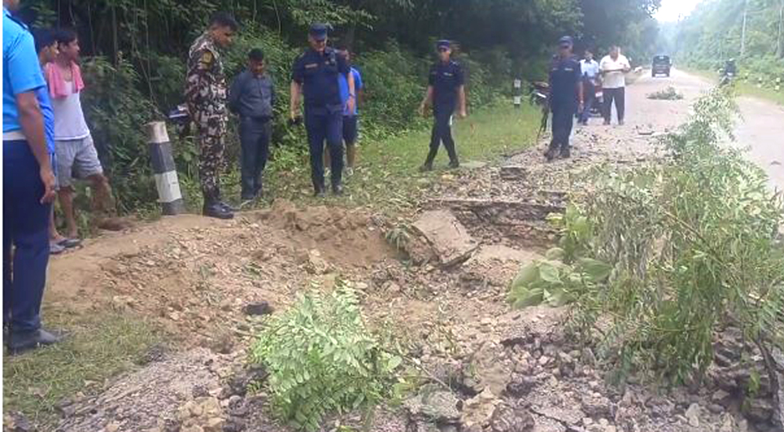 ३१ भदौ । बाँकेको राप्ती सोनारी गाउँपालिका–८, नयाँगाउँ नजिकैको पूर्व–पश्चिम राजमार्गमा शुक्रबार राति विस्फोट भएको छ । विस्फोटका कारण राजमार्गमा भ्वाङ परेको छ ।