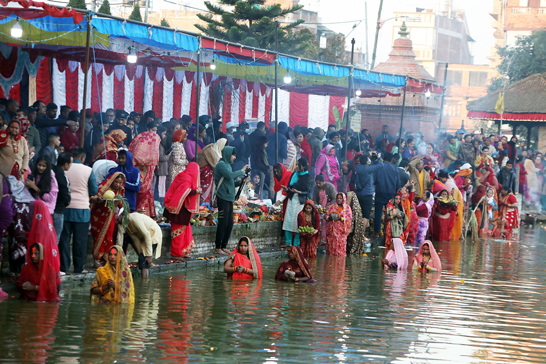 तराईको झल्को दिने गरी दुलहीझँै सिँगारिएर झकिझकाउ बनाइएको कमलपोखरीमा छठ मनाउन तराईवासीसँगै भक्तपुरका स्थानीय पनि सहभागी थिए ।